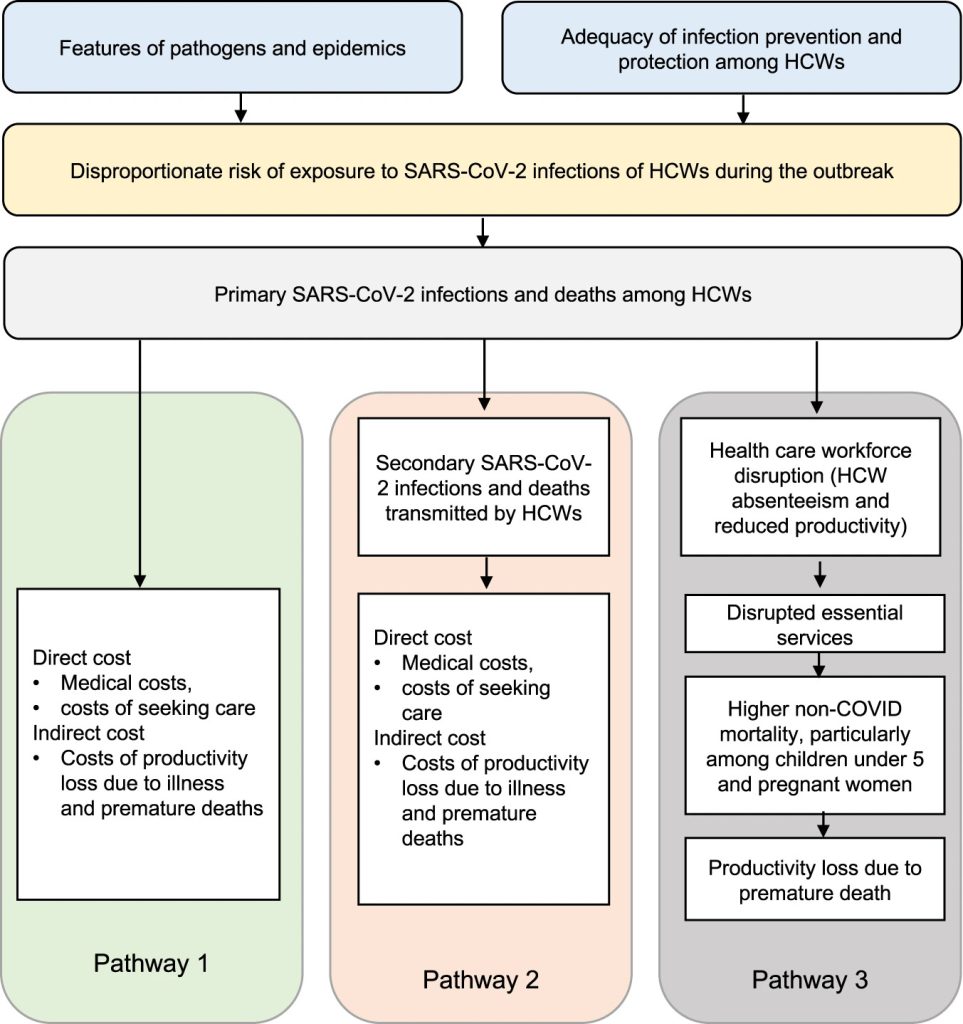 Fig. 3: Pathways from SARS-CoV-2 infection in HCWs to the economic cost.